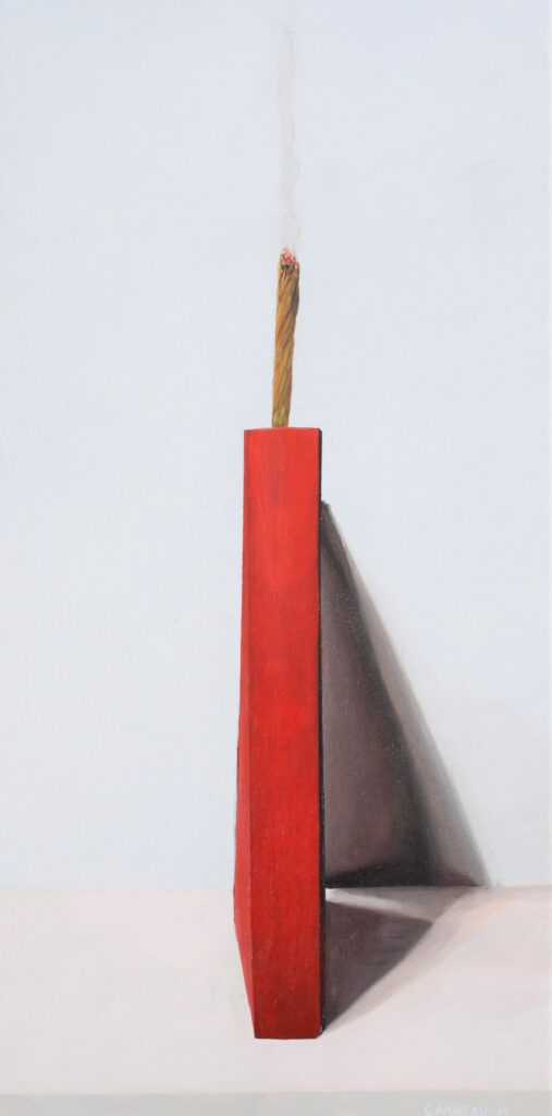 I returned to still lives at the the o k’inādās, Kelowna still life paintings. I painted this series when I was artist in residence (along with Rebecca Belmore and Adrian Stimpson) at the University of British Columbia Okanagan, in the summer of 2016. I decided to illustrate some of the thoughts and feelings I had while at the residency through still life compositions. Some refer to my relationships; others reflect on talks given there.