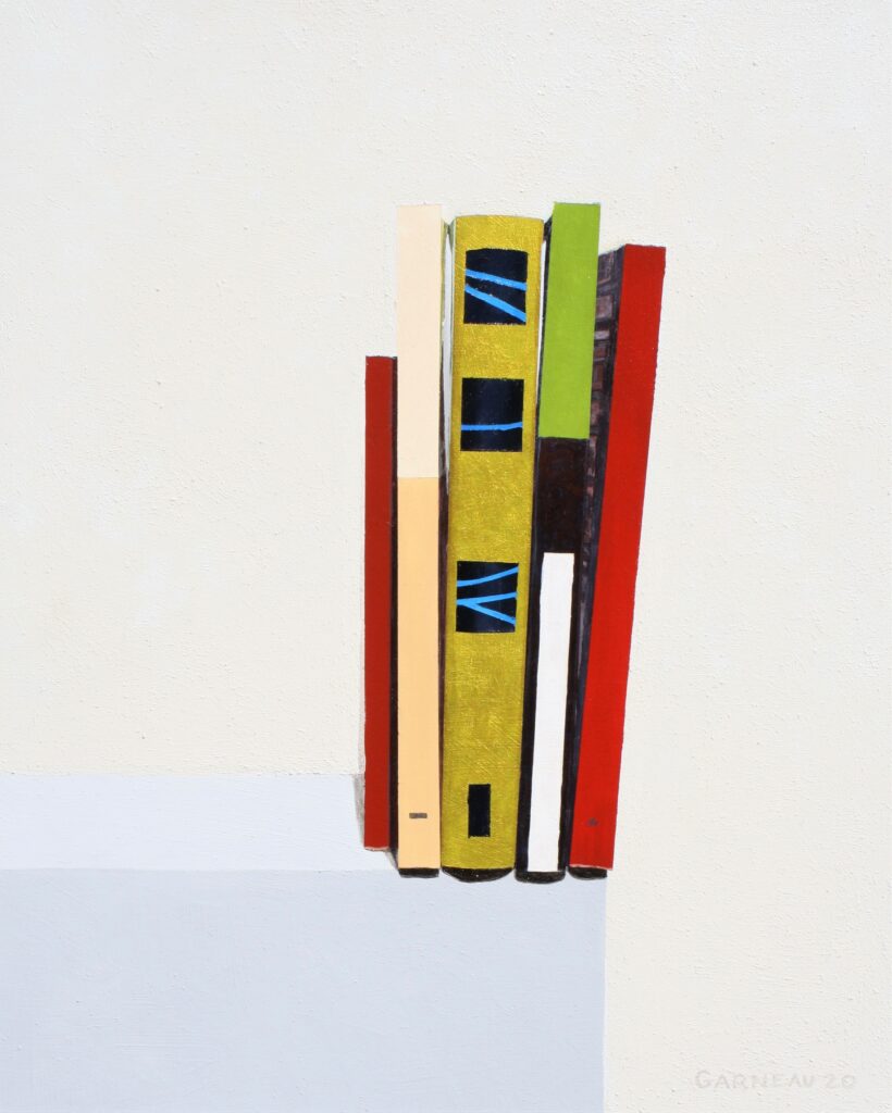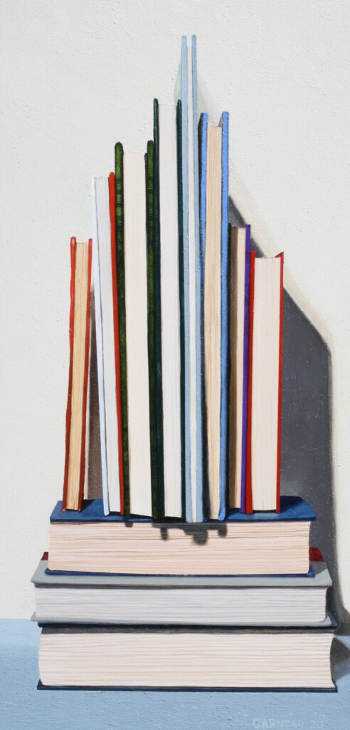 I think I am an analytic painter, a conceptual artist. I feel this may be an after-thought. David Bowie was suspicious of artists who claimed their work had deliberate meanings. The proof, he said, was that artists title their works after they make them. When a dozen or so paintings are dry, I bring them from my home studio to the university for varnishing, framing, and naming. Christening takes hours. The philosopher Arthur Danto explains that the main difference between works of art and mere real things is a title. Naming grants special status. Freed from my studio, but accompanied by my intentions (titles), these pictures are now their own beings waiting on you to get to know them.