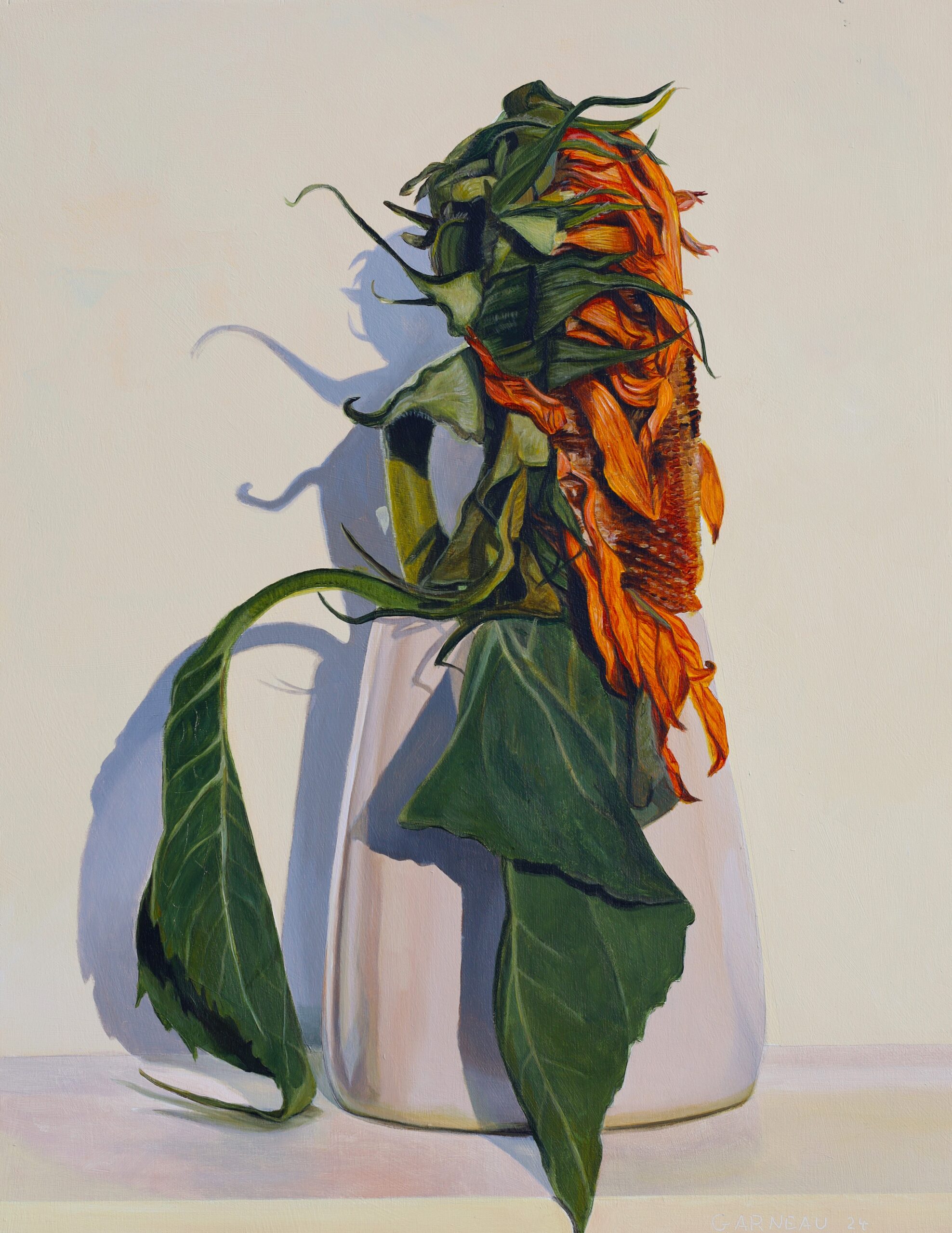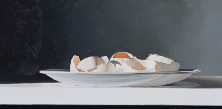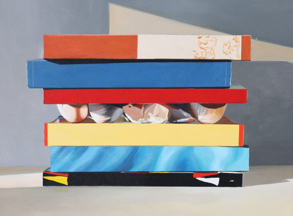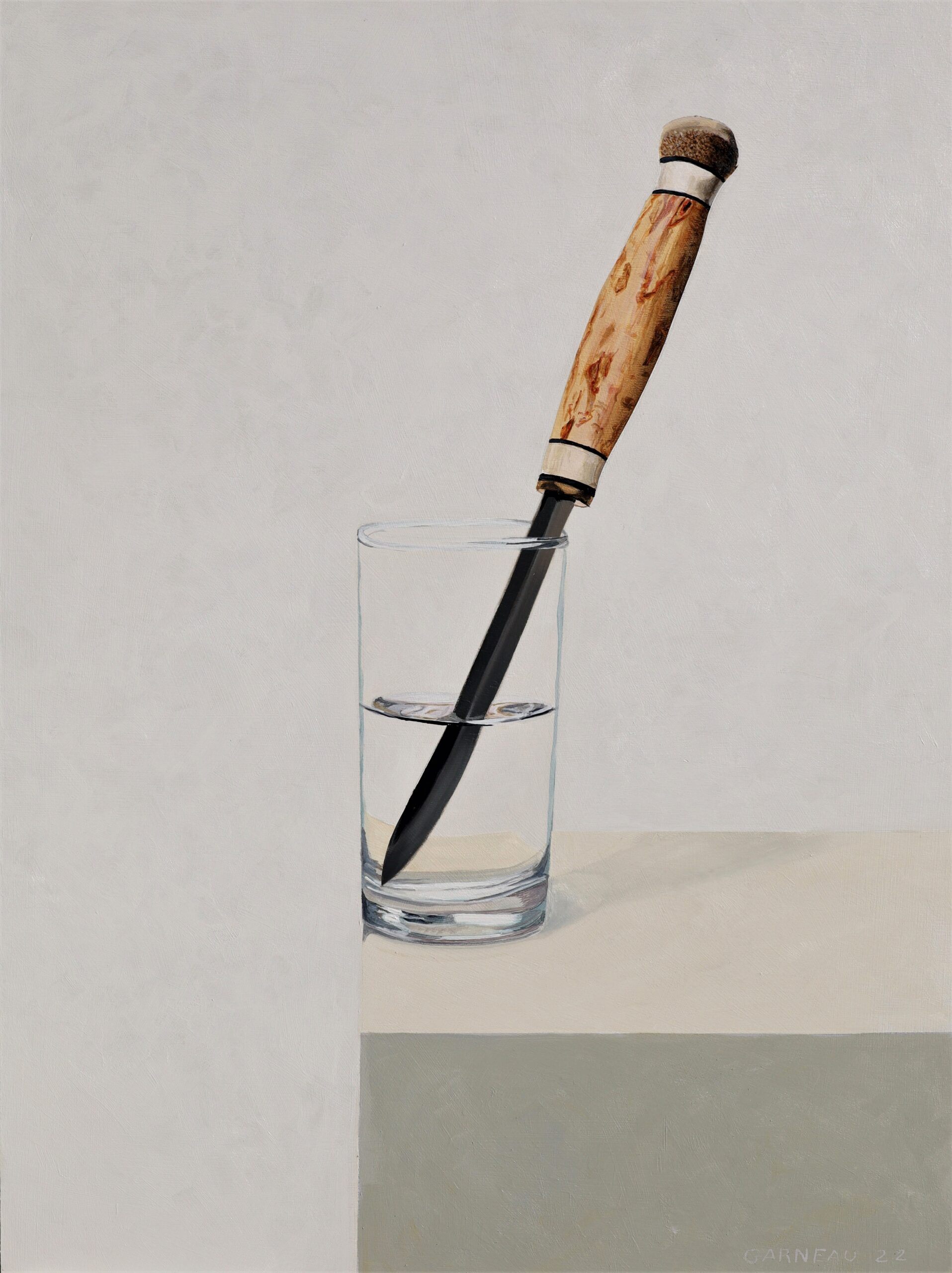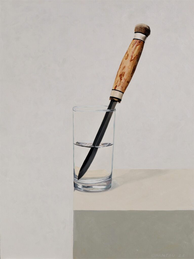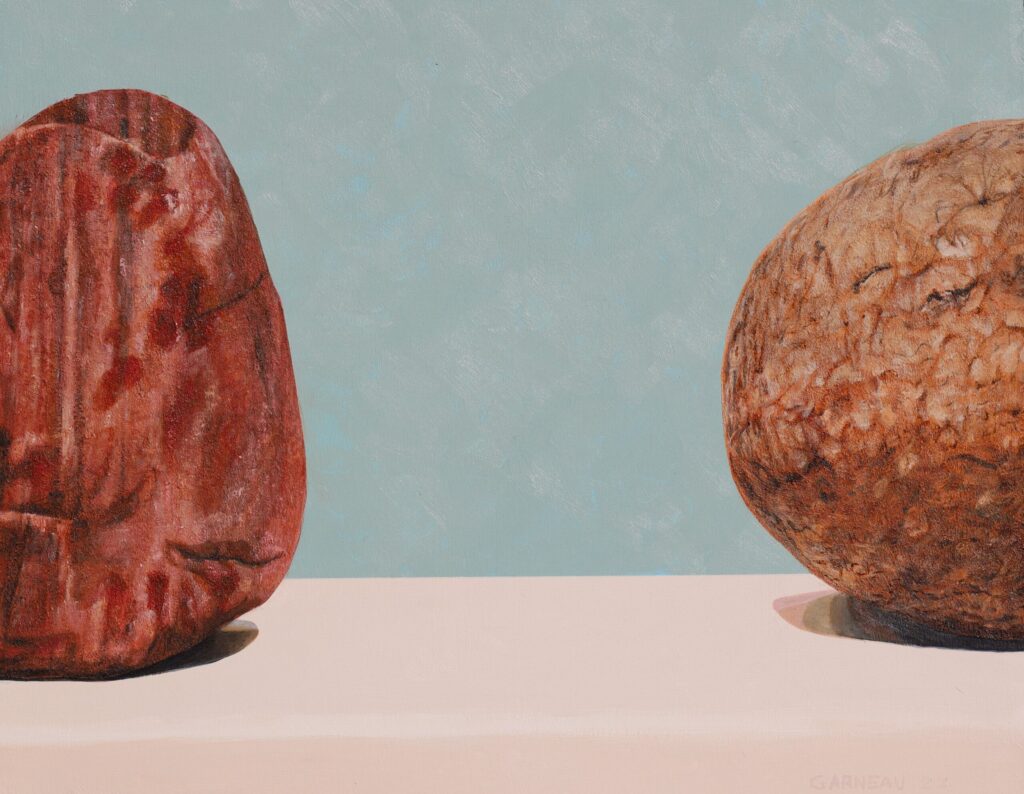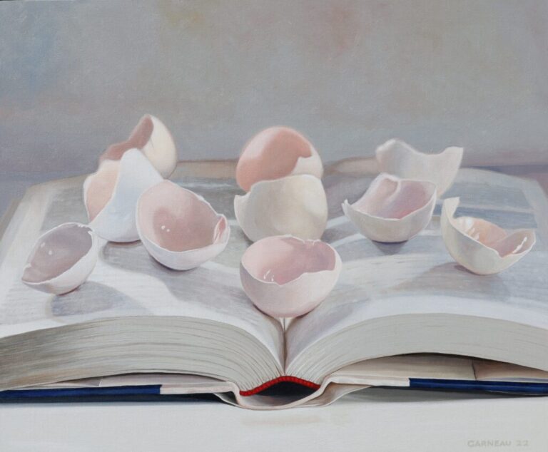 Before painting, I compose. In dreams, in notebooks, but especially with my subjects. Three times a year, I take a week to commune with my non-mental subjects. I observe them, hold them. What do they want? Who do they want to be nearby? What might they mean to and with each other? Today, a round stone the size of a child’s cranium wants to be cradled in bubble wrap. Tomorrow, it asks to be bound in twine. Next day, “leave me alone, unpictured.” Admittedly, sometimes, my subjects become objects and are made to do things I rather than they intend. I still feel bad about drowning that dictionary. Antique teacups and jugs are smashed with a stone hammer for a point I want to make. Sealing smudge smoke in a bell jar needed doing—but maybe not. No book wants burning but, one day, one may.