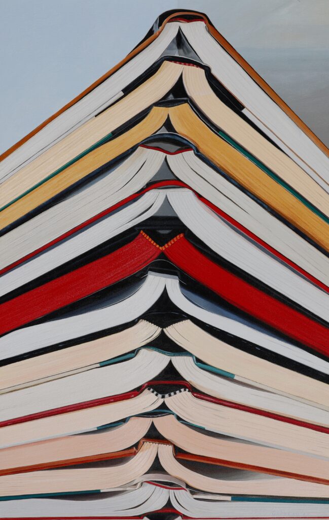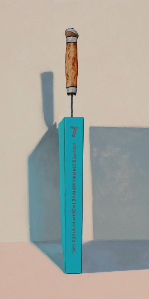 I am Métis, a professor, curator, and theorist of Indigenous contemporary art and identity. My mission since 2019 has been to translate into pictures ideas I have worked out in my writing. Occasionally, the translation goes the other way and paintings inform essays. Dark Chapters, the book that accompanies this exhibition, features 17 writers ‘reading’ my paintings. Their poems and essays embody this inspirational play between images and texts.