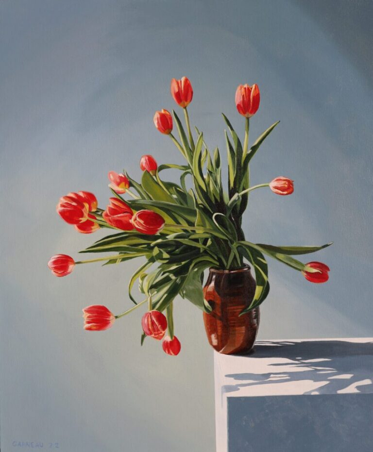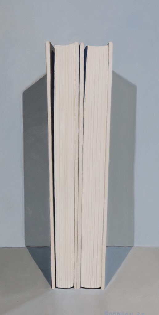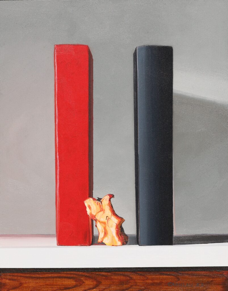 I think I am an analytic painter, a conceptual artist. I feel this may be an after-thought. David Bowie was suspicious of artists who claimed their work had deliberate meanings. The proof, he said, was that artists title their works after they make them. When a dozen or so paintings are dry, I bring them from my home studio to the university for varnishing, framing, and naming. Christening takes hours. The philosopher Arthur Danto explains that the main difference between works of art and mere real things is a title. Naming grants special status. Freed from my studio, but accompanied by my intentions (titles), these pictures are now their own beings waiting on you to get to know them.
